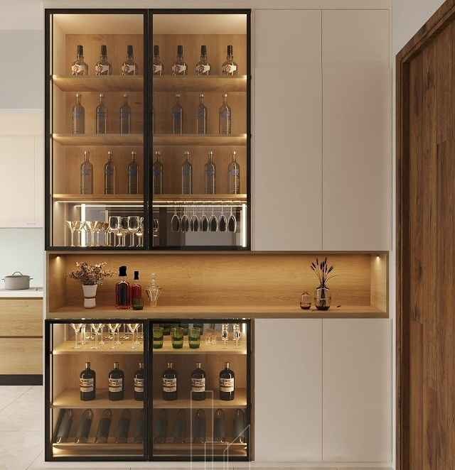 Không chỉ dừng lại ở công năng bảo quản, tủ rượu vang còn mang giá trị thẩm mỹ rõ rệt. Một chiếc tủ rượu thiết kế kính sang trọng, ánh đèn LED dịu nhẹ, đặt trong phòng khách hoặc khu vực bếp – phòng ăn sẽ ngay lập tức tạo điểm nhấn cho không gian. Với nhiều gia đình, sắm tủ rượu vang dịp Tết không chỉ để dùng, mà còn để “làm đẹp nhà”, thể hiện gu thẩm mỹ và phong cách sống hiện đại khi đón khách đầu xuân.
